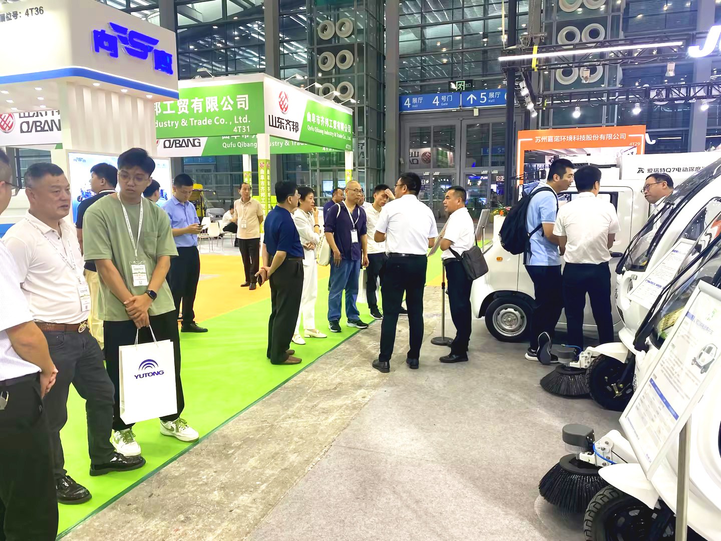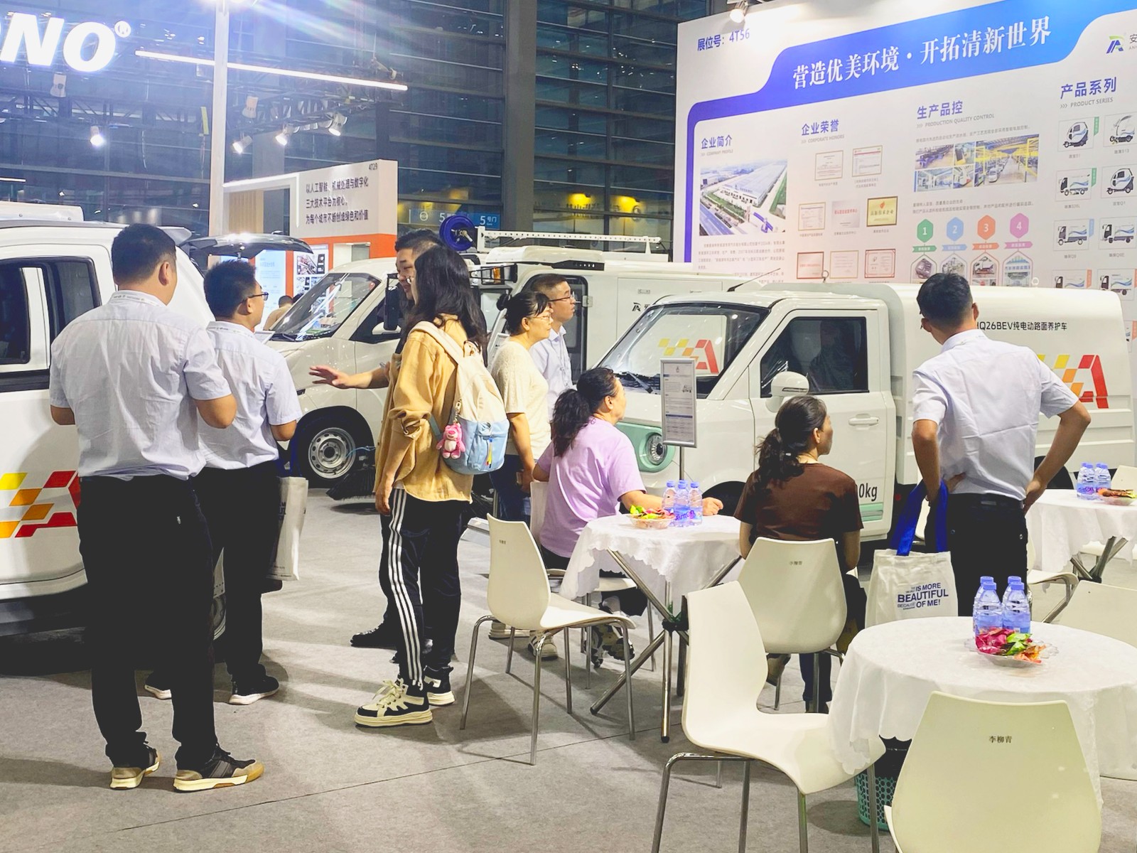 展會首日,現場氣氛熱烈,參觀者絡繹不絕。工作人員耐心地為前來咨詢的觀眾詳細介紹了展出車輛的性能與優勢,并根據不同使用場景的特點及要求,為其推薦相應的產品以及優秀的環衛作業解決方案,他們對此連連稱贊。